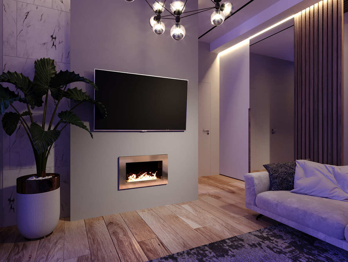 Декоративное стекло — крепится на всю заднюю стенку очага. За счет своего зеркального отражения, пламя визуально становится в 2 раза больше и кажется, что камин горит еще ярче.